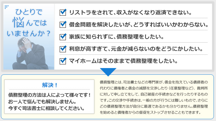 - 裁判所を通して、借金を全額免除してもらい人生の再スタートをきれます。一人で悩まず、まずはご相談を。
